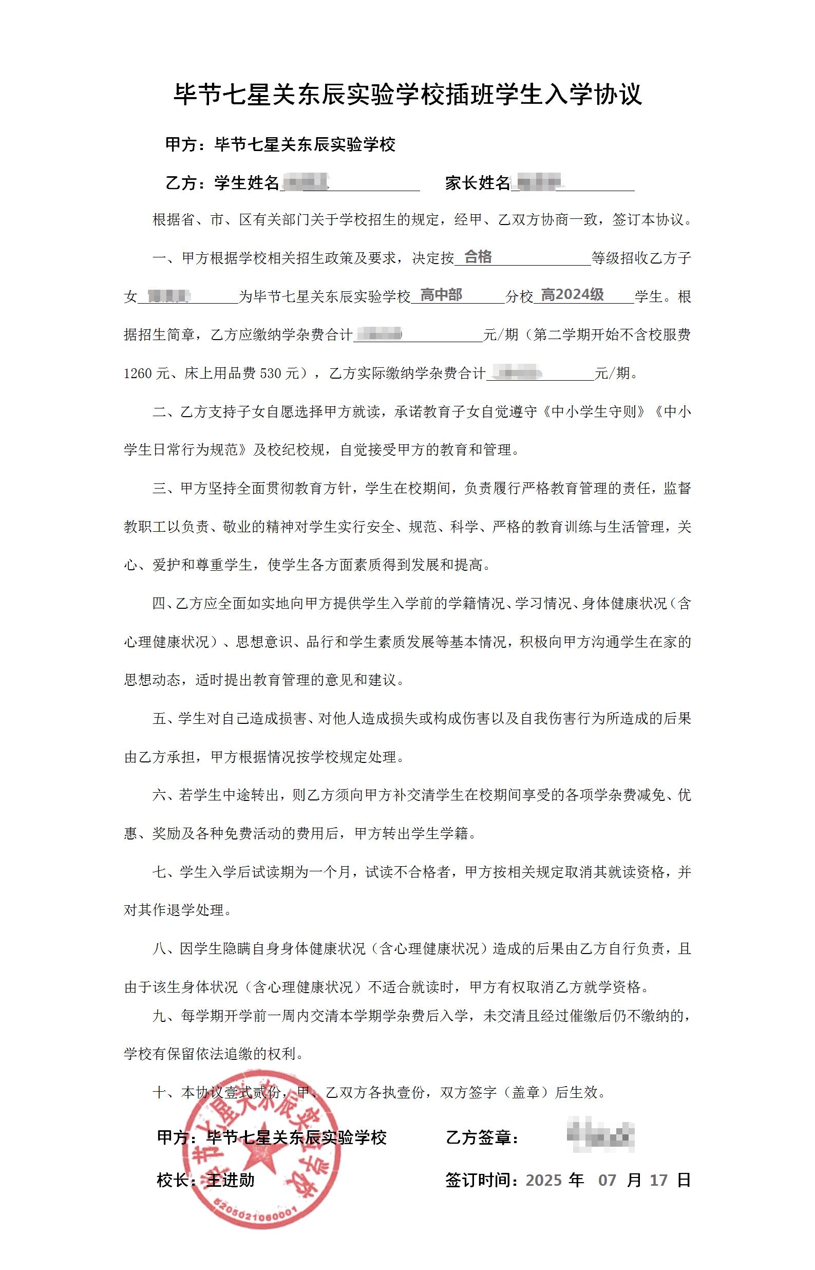 缴费成功后,电⼦⼊学协议⾃动⽣成,在线审阅、电⼦签名,即刻⽣效,永久保存。