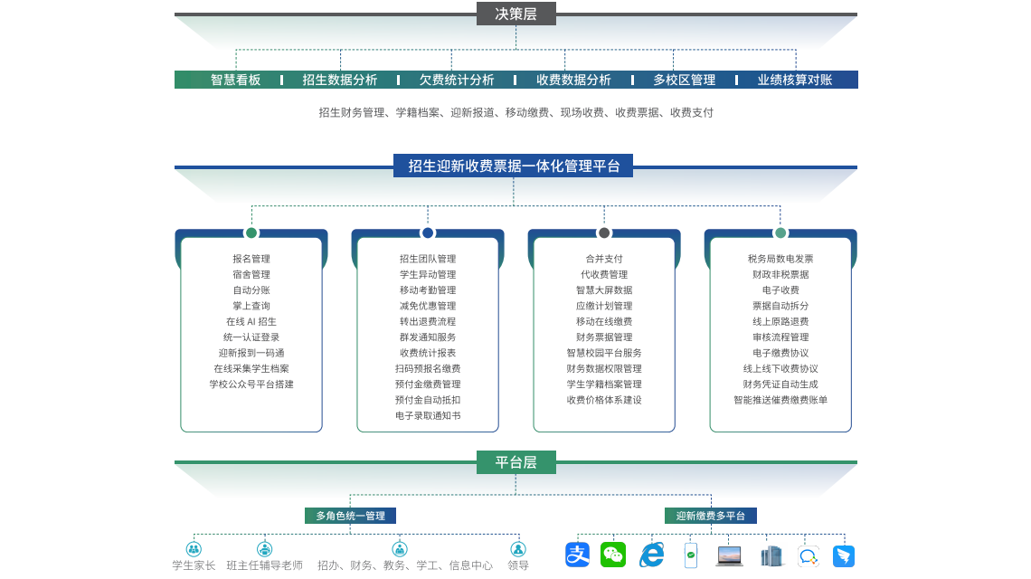 - 录取即收费:招生系统确认录取后,财务系统自动生成缴费账单并推送给家长