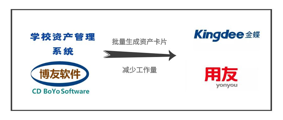另外系统可无缝对接金蝶、用友财务系统,自动生成相应的资产卡片,是学校资产管理的好帮手!