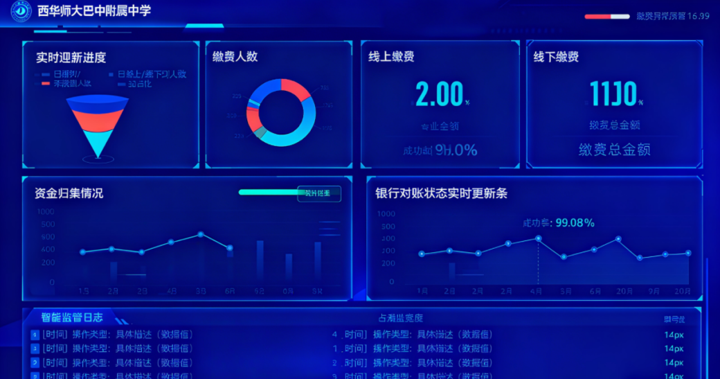 在教育数字化转型加速推进之际,西华师范大学附属巴中实验中学(师生近3500人)亦面临基础教育收费管理的共性治理难题:多个缴费入缺乏统一整合,政策减免与缴费数据未实现智能联动,多系统数据割裂导致统计低效,学生电子档案缺乏统一管理,纸质票据存在归档难、补办繁等痛点,师生高频往返财务部门;家校协同依赖人工核验,数据传递滞后且误差风险高;监管端受限于人工汇总报送,财政与教育部门动态监管效能受限,校内财务、学籍、教务等系统数据壁垒显著——这些痛点不仅制约办学管理效能,更在一定程度上分散了学校聚焦立德树人核心任务的精力。