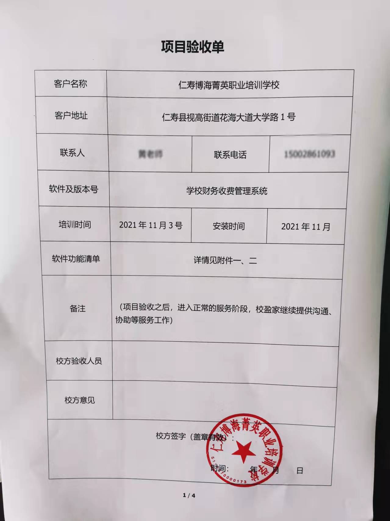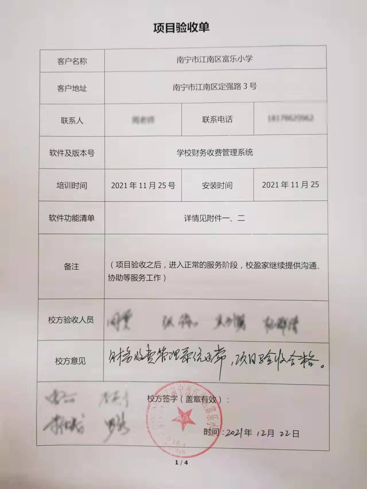 经过校盈家服务人员的精心布署,项目已在12月成功完成验收