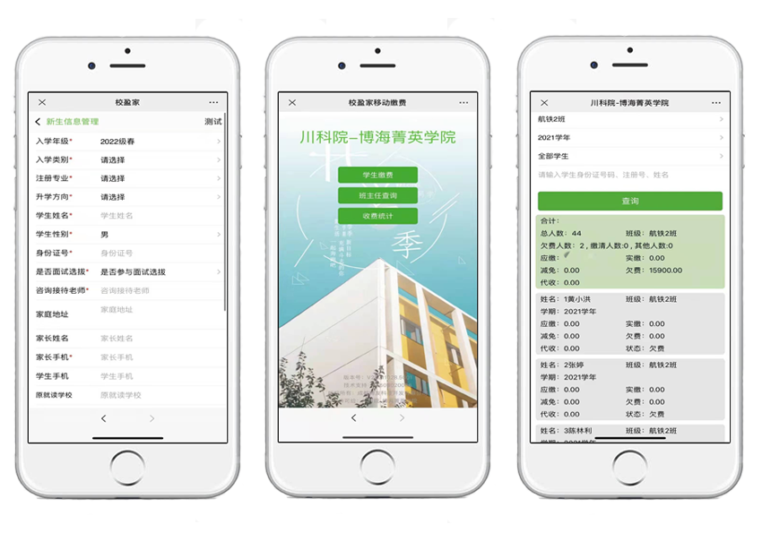 2021年仁寿博海菁英职业培训学校采用的校盈家学校收费管理系统已成功完成验收,通过校盈家的在线报名、线上缴费、不同角色在线查询收费数据、权限管理、档案管理、学杂费收取、代收费收取、退费管理、票据作废管理、奖学金减免、入校分班、学生异动管理、数据统计等线上线下一体化管理功能为学校打造出一款属于自己的收费管理平台,不仅让学生家长不再为报名缴费东奔西走,也方便了学校领导老师对收费数据的实时查看。