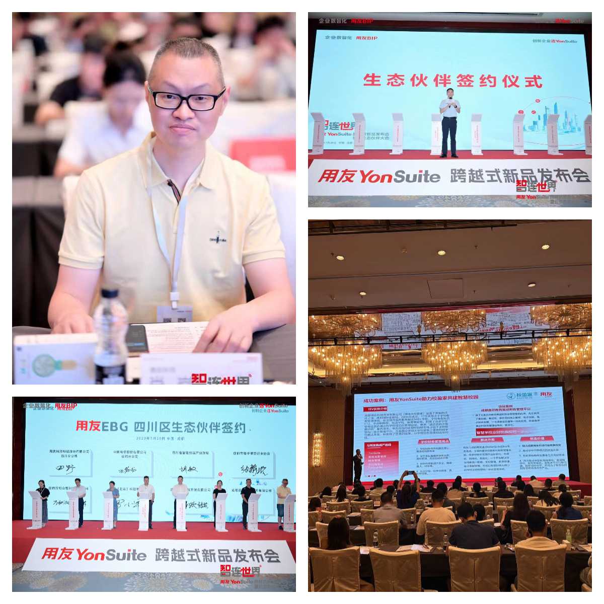 为共建智慧校园财务业财税票档一体化管理平台,2023年7月20日,在用友举行的《智连世界·跨越式新品发布会暨云生态伙伴大会》上,校盈家与用友正式签约成为生态合作伙伴。