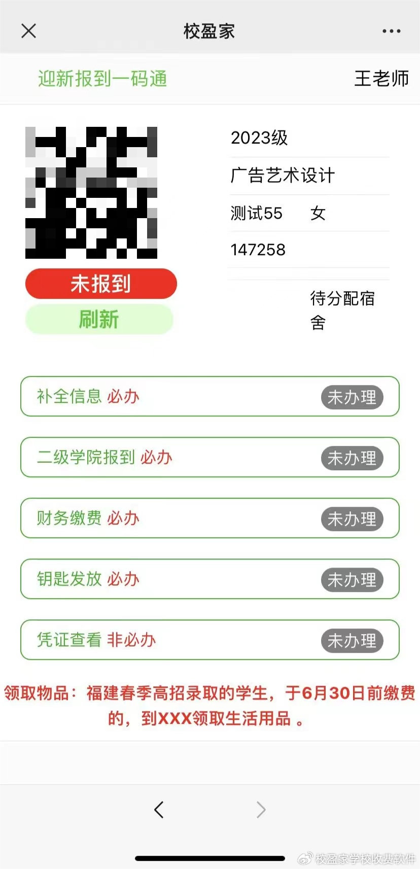 校盈家迎新报到一码通管理系统利用互联网技术与二维码应用相结合,实现了学校迎新收费智能化管理。